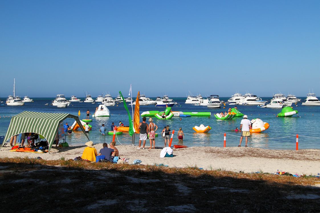 | Thompson Bay and a floating play-park for the kids. How cool is that?! Thompson Bay is also the site of the Rottnest Express Ferry Terminal. |